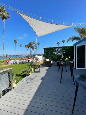 Located on the water in Mission Bay on the tip of a peninsula, Tower Beach Club is a unique indoor/outdoor space with stunning panoramic views of Mission Bay. With views of La Jolla to the North, the sunset over Mission Beach to the West, and the water activity of Sail Bay to the East, the view is unrivaled. With the ability to host weddings, holiday parties, special occasions, company events & meetings, and photo shoots this venue does it all. With 4,300 sq/ft this venue includes an open-air bar and massive beachfront patio.