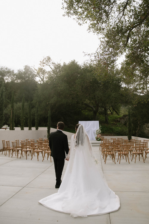 Across ten stunning acres, you’ll find exclusively outdoor ceremony and reception spaces that feel like the French countryside- romantic, refined, and effortlessly elegant. Guests mingle over cocktails on the gravel courtyard while your celebration unfolds under the open sky.