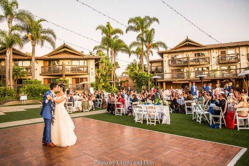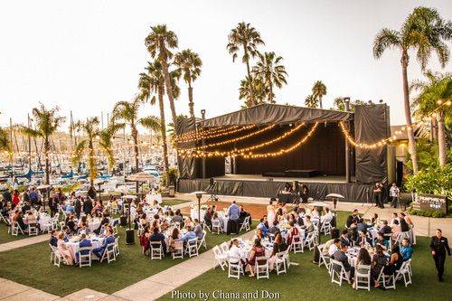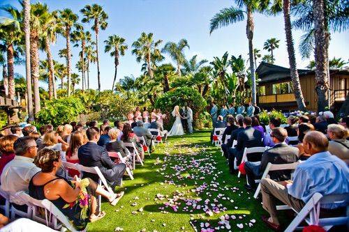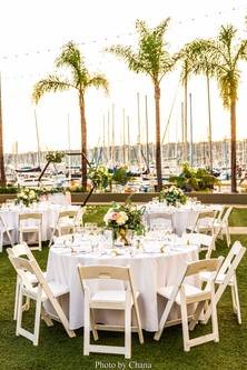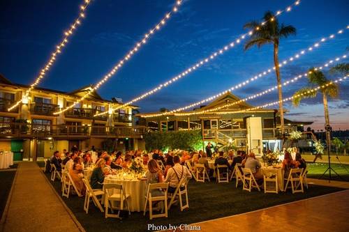 Ceremonies at Humphreys Half Moon Inn are held on the green in an intimate private garden. Here, elegantly arching palms, vibrant flowers, flowing waterfalls, and a decorative iron arch crisscrossed with vines will a beautiful and gorgeous backdrop for your vows. Dinner and dancing can take place in the Harbor view Room or Marina Ballroom, which accommodate 80 and 140 guests, respectively. Both of these banquet halls feature sophisticated accents and large windows that overlook the yacht marina and the hills of Point Loma.